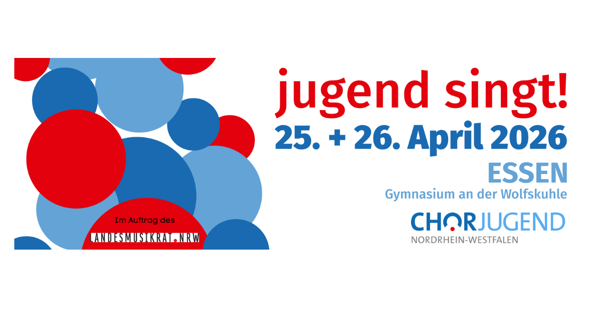 Wir freuen uns auf das Festival Jugend Singt 2026 in Essen mit 30 teilnehmenden Chören!