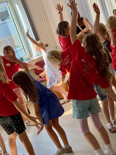 Zum Weltkindertag 2025 haben wir mit vielen Kindern aus unseren Chören eine klangvolle Reise erlebt: In einem bunten Workshop unter Leitung von Oliver Giefers und dem Team vom Community Music Institut Köln ging die Reise vom heimischen “Fitness-Studio” per Flugzeug, mit dem Bus und zu Fuß durch den Dschungel Afrikas bis zum imaginären “Sushidorf”. Unterwegs trafen wir gefährliche und freundliche Tiere, seltsame Gestalten und sogar eine Zauberin. Dabei half das neu gelernte “Mutmach-Lied”.